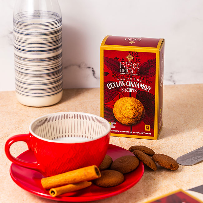 Απολαύστε τα Χειροποίητα Μπισκότα με Κανέλα Κεϋλάνης της Bisco Delight — τραγανά, αρωματικά και πλούσια σε γεύση, με την εκλεπτυσμένη και ζεστή νότα της Κανέλας Κεϋλάνης να αναδεικνύει κάθε μπουκιά.
