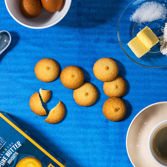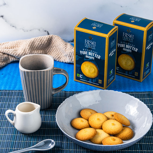 Ανακαλύψτε τα Handmade Pure Butter Biscuits της Bisco Delight, φτιαγμένα με μεράκι και εξαιρετικές πρώτες ύλες για αυθεντική, πλούσια γεύση. Κάθε μπισκότο είναι χειροποίητο, τραγανό και αρωματικό, ιδανικό για να συνοδεύσει τον καφέ ή το τσάι σας.