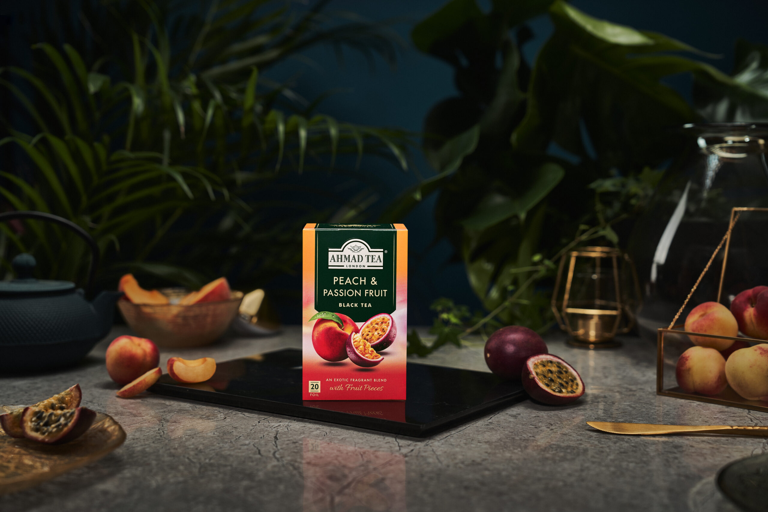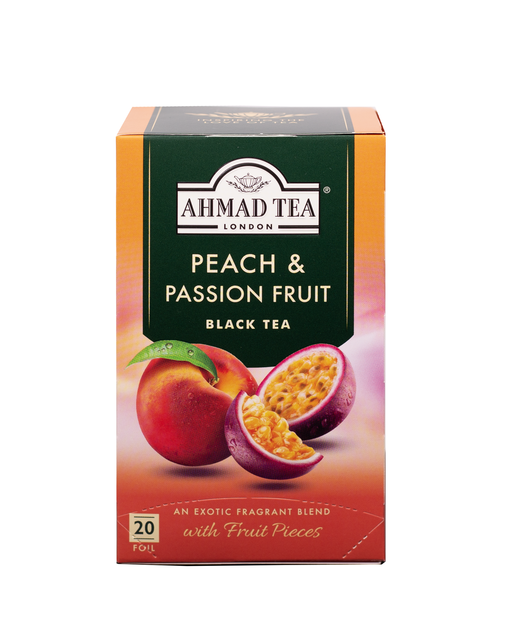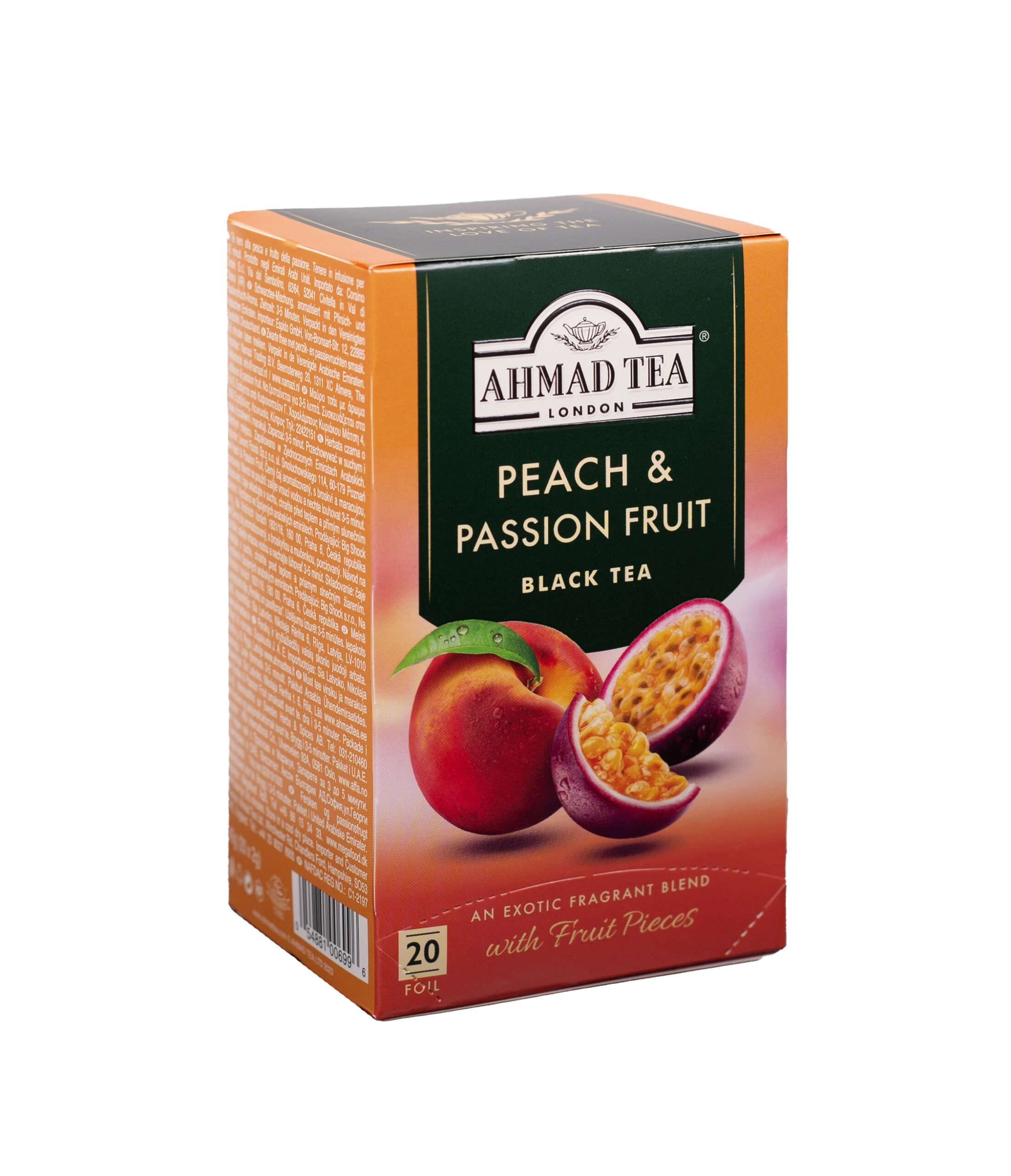 Οι Tea Masters μας δημιουργούν μια ισορροπημένη βάση χρησιμοποιώντας ζωηρά και στιβαρά μαύρα τσάγια από την Αφρική και στη συνέχεια προσθέτουν αληθινά κομμάτια ροδάκινου και φρούτων του πάθους. Το ώριμο ροδάκινο και το τροπικό φρούτο του πάθους δημιουργούν ένα τσάι που είναι εξαιρετικά φρουτώδες, με ένα αναζωογονητικό εξωτικό άρωμα. Είναι πολυαγαπημένο τσάι της συλλογής Ahmad Tea για περισσότερα από 20 χρόνια και είναι το τσάι μας με τις μεγαλύτερες πωλήσεις μαύρου τσαγιού με φρούτα στον κόσμο!